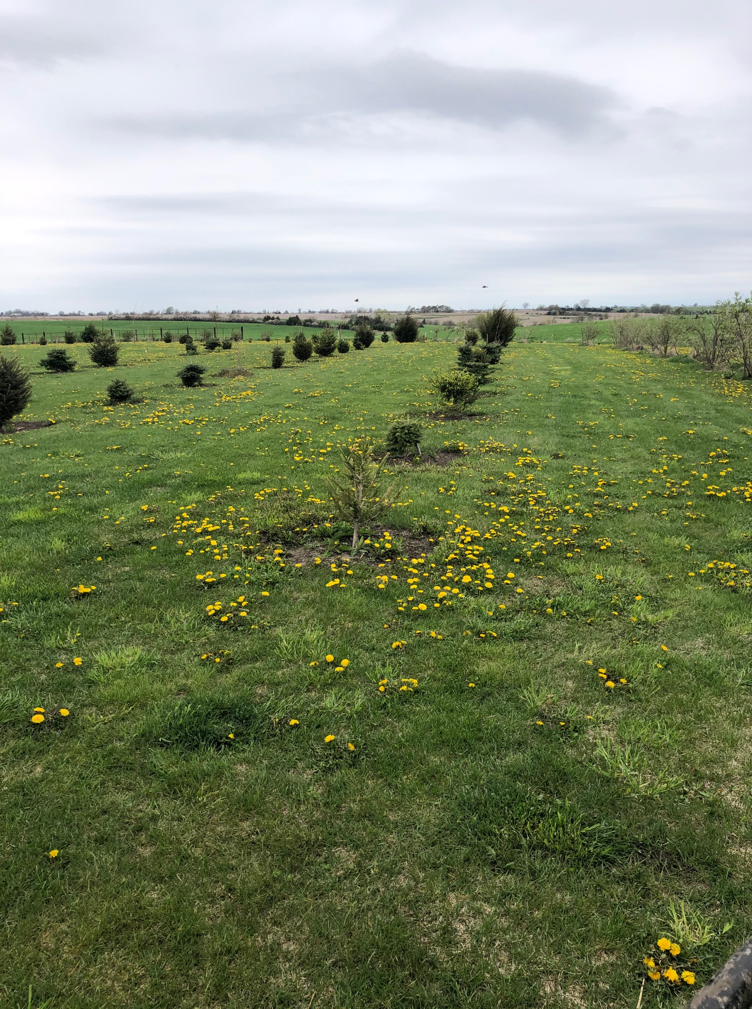 Planting happens from March into April when I have time and the weather permits. It usually happens in the mornings or evenings and sometimes my family will come to assist me. After planting you have to spray herbicide consisting of a post-emergent (generic Round-up) and a pre-emergent (Prowl H20) about 18 inches radius around each tree, so the weeds and grass do not stunt the trees’ growth. You also have to mow in between all the trees regularly until about mid-August so the grass does not overgrow and shade the seedlings out. Once mid-late August hits you don’t have to mow anymore because the trees need some wind block and insolation for the coming winter. This is also the time I take inventory of my trees that did not survive and I order my trees from my favorite nursery, New Life Nursery, in Michigan (Home – New Life Nursery). Overall, I would estimate I spend 10-12 hours a week tending to the trees if I am not watering. Irrigation of the 3 acres takes me about 12 hours.